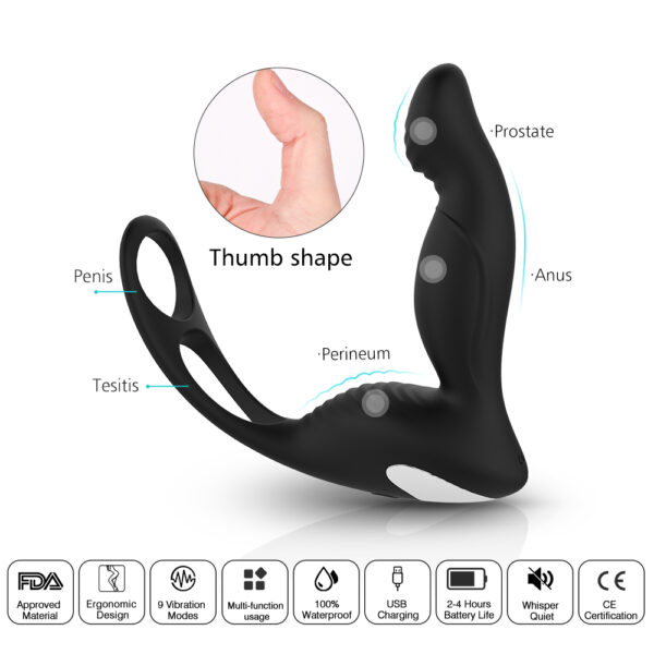 Complementing the prostate stimulation is the integrated cock ring, adding an extra dimension to the user’s experience. The ring is crafted from a stretchable yet firm material that comfortably encircles the base of the penis and the testicles, creating a pleasurable constriction that can enhance and prolong erections. This dual-action design not only elevates pleasure but also promotes sexual health by encouraging blood flow and stamina.